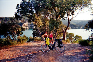 Traversée des zones industrielles de Toulon, remontée de la vallée du Gapeau, Belgentier, La Roquebrussanne, Brignoles, repas-sieste au bord de l'Argens. La suite sous une chaleur écrasante : Barjols, Tavernes, Quinson. Et là une petite route pour rejoindre Esparron qui donne l'impression d'être face à un mur. On s'installe au bord de l'eau, la nuit arrive tout doucement.